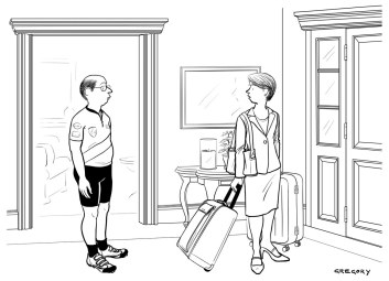 “Goodbye, Kevin. I could look the other way with the boozing and the skirt-chasing, but I did not sign up for bicycle clothes.”